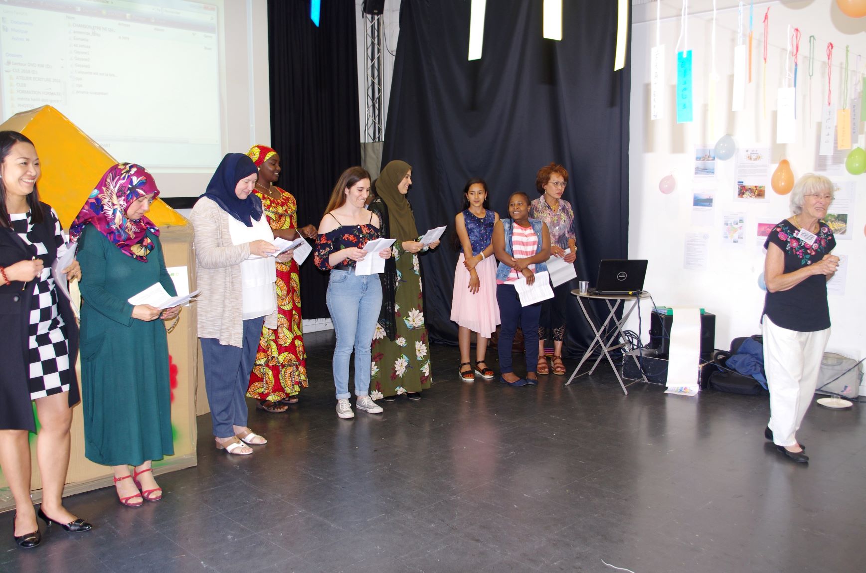 Cette première partie « administrative » a été suivie par plusieurs présentations des apprenantes du cours collectif de Sylviane Lefièvre. Chacune d’elles a présenté son pays à l’aide de nombreuses photos et anecdotes. Nous sommes ainsi partis en Algérie, au Maroc, en République du Congo, en Moldavie… Un vrai tour du monde.